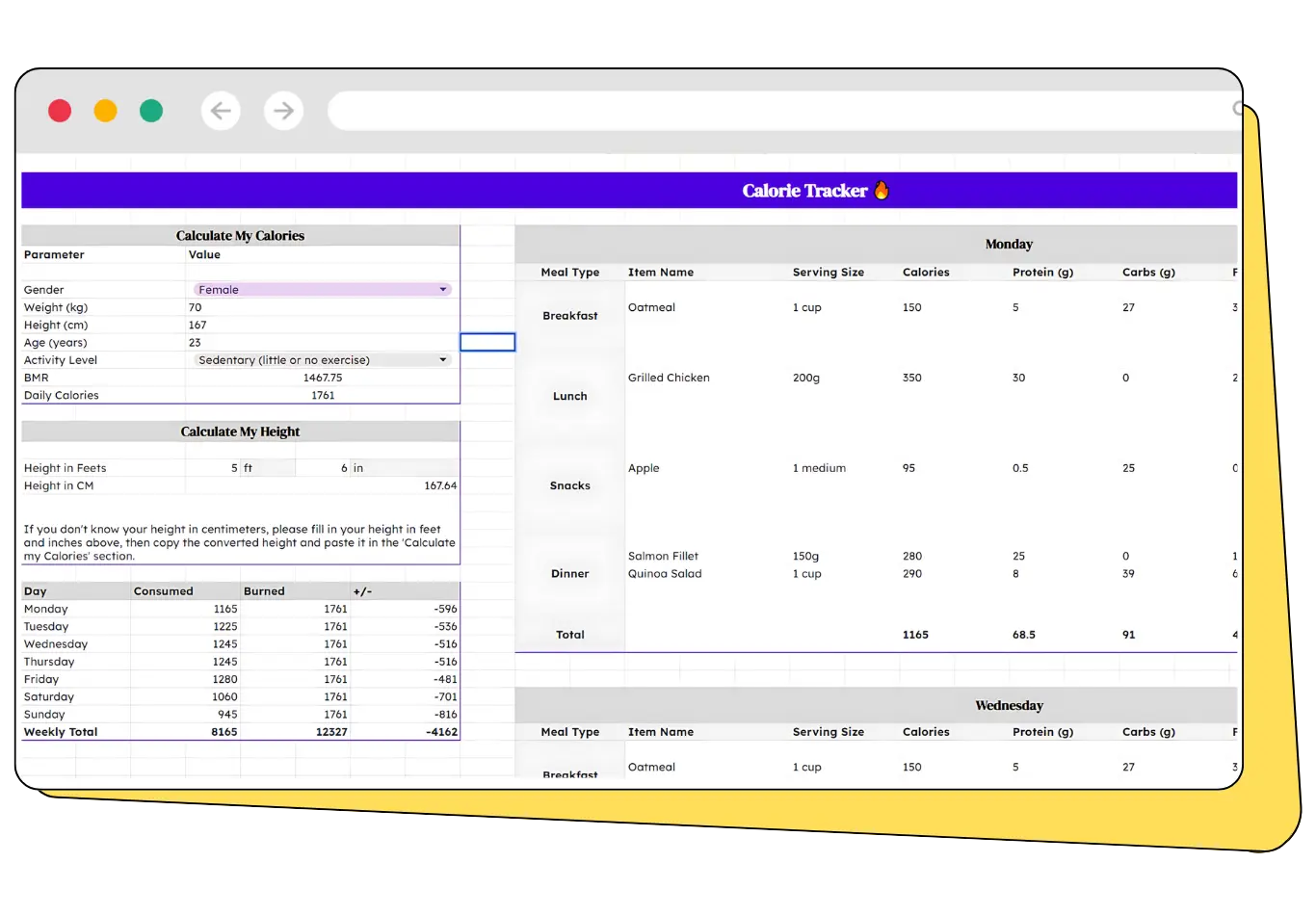 Tailor the tracker to fit your specific needs. Adjust goals, input personalized data, and monitor what matters most to you. Whether you're focusing on weight loss, muscle gain, or overall health improvement, this tracker adapts to your unique journey! 😊